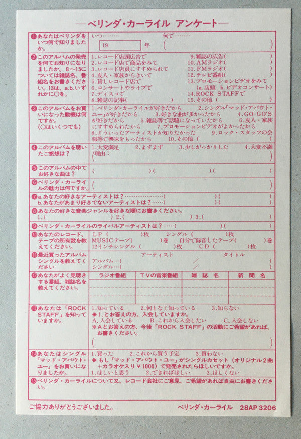 Belinda Carlisle - Belinda (Vinyl, LP, Album) Near Mint (NM or M-) / Near Mint (NM or M-)