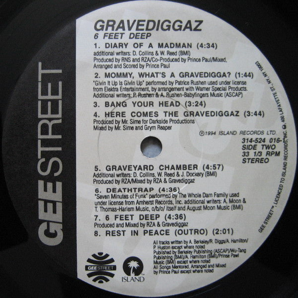 Gravediggaz - 6 Feet Deep (Vinyl, LP, Album, Stereo) Very Good (VG) / Good Plus (G+)